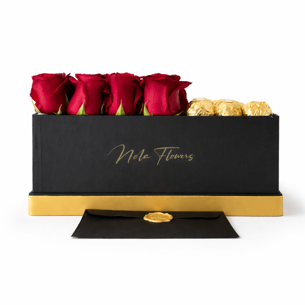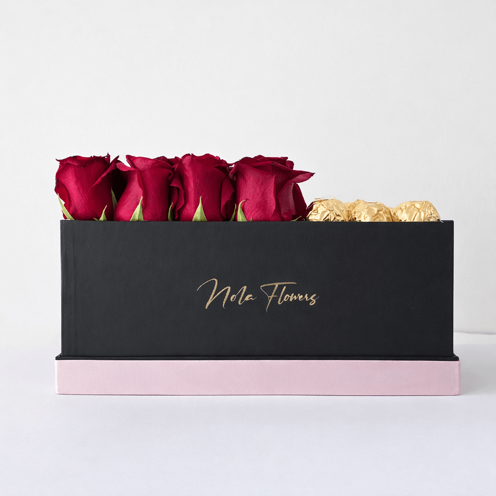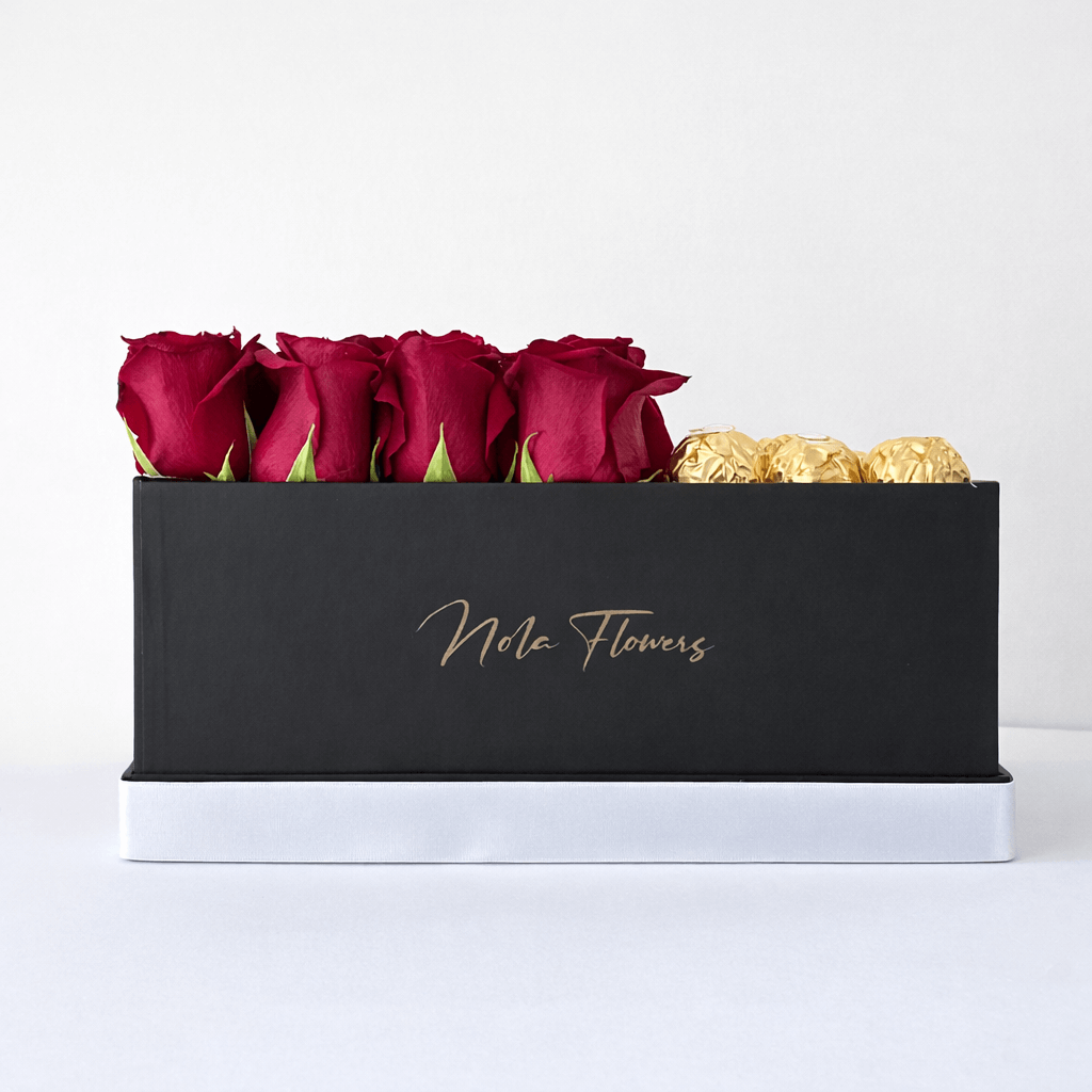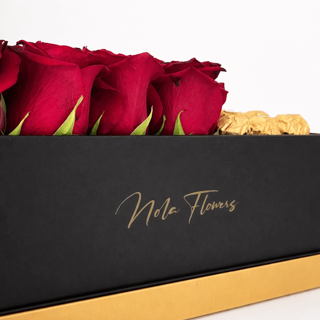Passion Royale is a striking arrangement of premium red roses presented in an elegant medium-sized box. Finished with Ferrero Rocher chocolates, a personalised ribbon, and a complimentary message card in an envelope, it’s a powerful expression of passion and love.